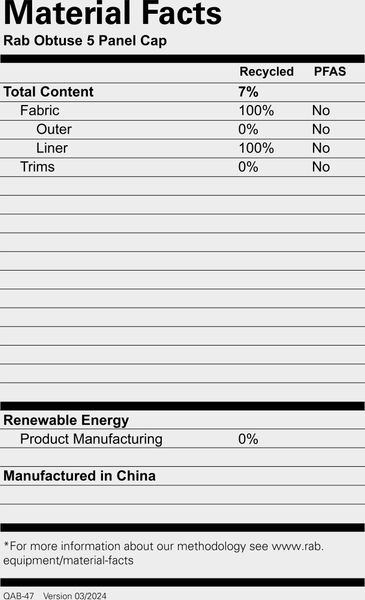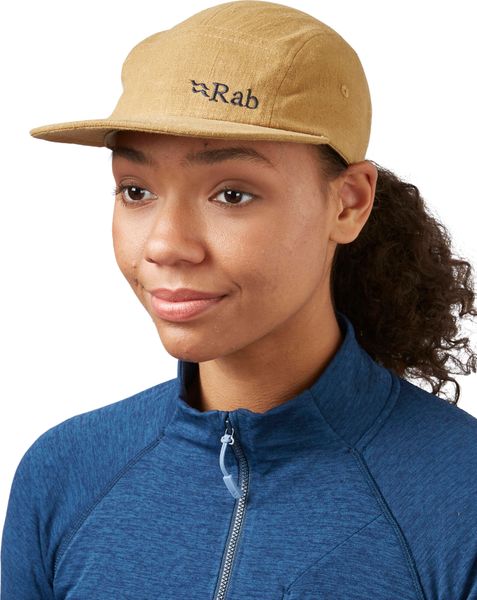 "Special accents are set by the color-coordinated, embroidered eyelets, which not only ensure improved air circulation on warm days, but also round off the visual appearance of the cap. The woven Rab brand label also gives the cap a subtle but stylish brand statement that underlines the quality of the product."