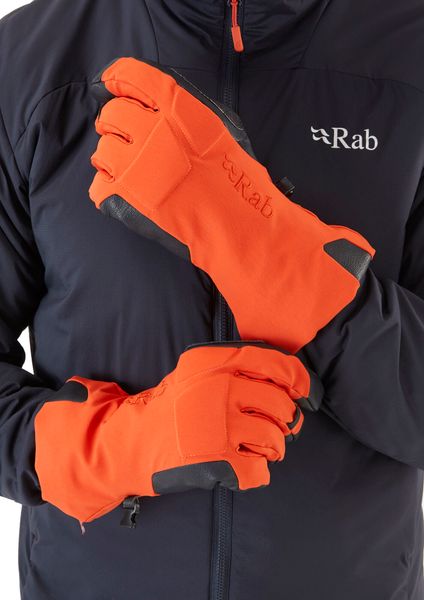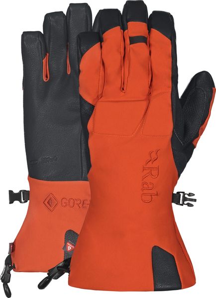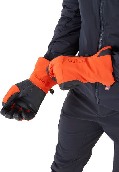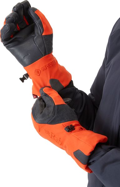 "The Pivot GTX gloves from Rab are the perfect choice for ambitious climbers and ice climbers embarking on technical alpine challenges. These gloves combine waterproof GORE-TEX Active fabric with warm and breathable PrimaLoftu00ae Gold synthetic insulation to ensure dry and warm hands even in extreme conditions. The robust stretch upper and soft leather palms provide additional grip and protection, while the reinforced ankle section protects against rock and ice."