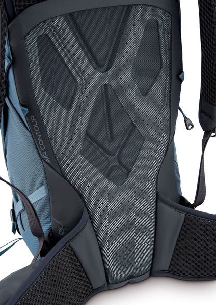 "The Air Contouru2122back system ensures exceptional comfort and stability by hugging the back and following your every move. The adjustable backpack length allows for individual adjustment, while the vacuum-formed, pre-shaped ABS-backpack retains the shape of the backpack while remaining flexible. The pockets on the hip belt are particularly practical, allowing quick access to important items."