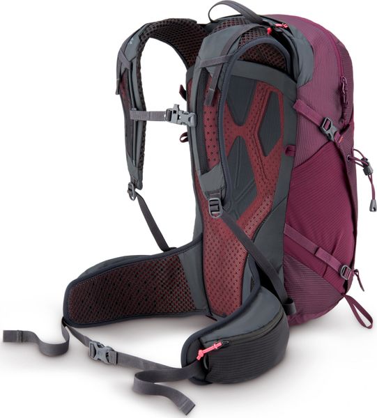 - "Hiking bags can be transported comfortably thanks to the attachment points and elasticated backrest system."