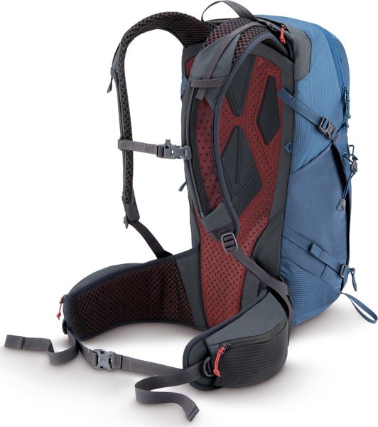 - "Hiking bags can be transported comfortably thanks to the attachment points and elasticated backrest system."