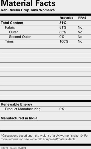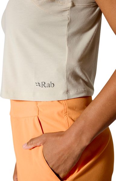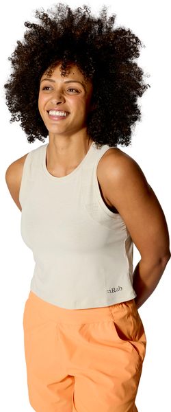 "The Rivelin Crop Tank Wmns by Rab is the ideal tank top for active women who enjoy climbing, hiking or bouldering. It combines comfort and style and is specially designed for warm summer days. Made from the innovative Dryflou2122 material, it offers a soft feel and excellent moisture wicking so that you always stay dry, even during intense activity. The strategically placed mesh inserts around the armholes and on the upper back promote air circulation and ensure a comfortable temperature."