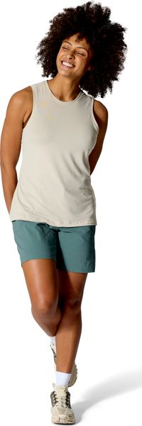"A special highlight is the breathable mesh insert at the back and the open back detail, which provide additional ventilation. These features make the tank top perfect for long hikes or climbing tours in high temperatures. The longer, flowing, loose fit feels light and airy and offers you the freedom of movement you need."