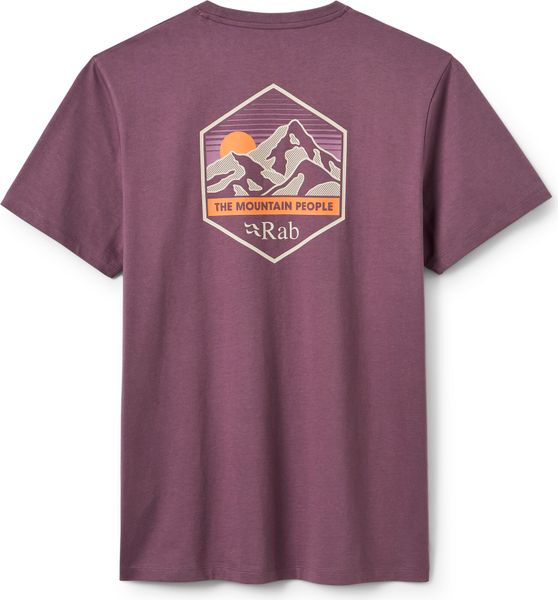 "Comfortable, soft, classic T-shirt made from 100u00a0% organiccotton. Simple and sleek on the front, with Rab's classic u201eThe Mountain Peopleu201c ThreeSummit graphic on the back."