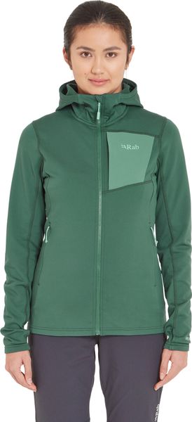 "The Superflux Hoody Wmns from Rab is the ideal companion for anyone who enjoys being outdoors, whether hiking or speed hiking. This versatile mid-layer not only offers excellent thermal insulation thanks to the soft and stretchy Thermicu2122-Fleece material, but also impresses with its modern design with flat seams and a contrasting chest pocket"