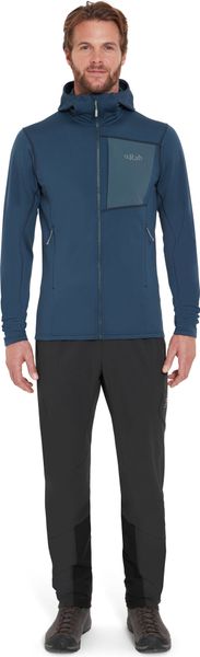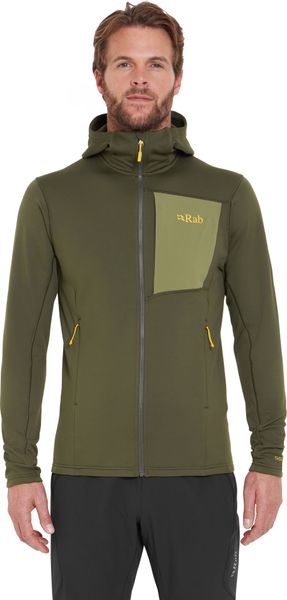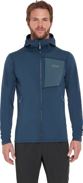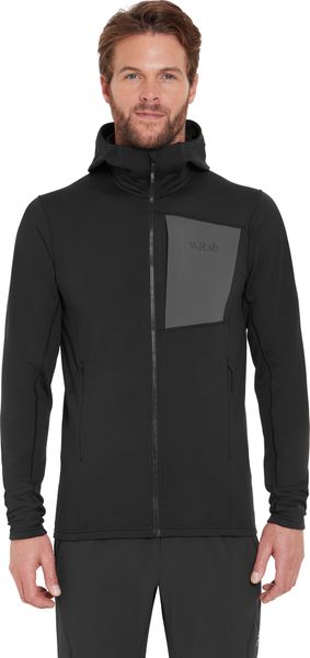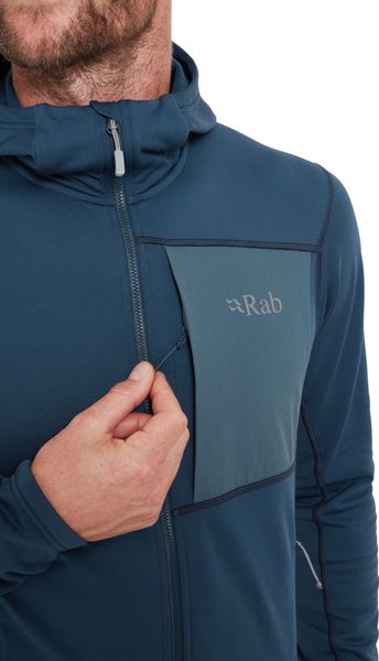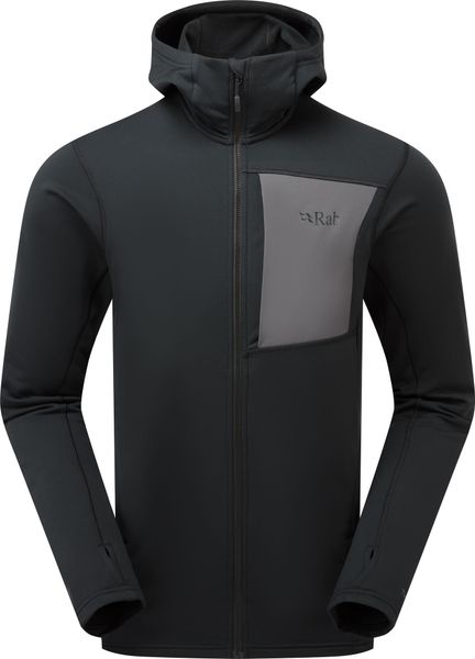 "The Superflux Hoody from Rab is the ideal companion for outdoorenthusiasts who want to enjoy their adventures to the full in cold weather. Whether you're hiking or speed hiking, this mid-layer offers optimum warmth and flexibility thanks to the high-quality thermicu2122fleece material made from recycled polyester. The close-fitting hood provides reliable protection against cutting cold, while flat seams and a chest pocket in a contrasting color give the hoody a modern look."