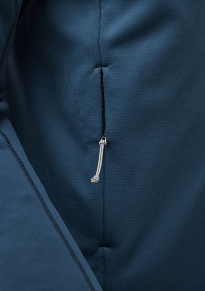 "The concealed zippered pockets are particularly practical, not only offering storage space but also the option of warming the back when the wind picks up. A lower hem ensures that the lower back area also remains well protected. The thumb loops are an indispensable detail for climbers, as they prevent the sleeves from riding up when you have to hold on over your head."