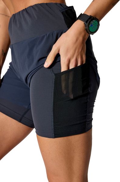 "With a 5-inch inseam and close-to-the-body fit, these shorts are ideal for mountain hikes and rocky trails where extra protection is needed. Made from environmentally friendly materials with a fluorocarbon-free DWR coating, these shorts are not only functional but also sustainable. Rely on the Talus 2 in 1 shorts to be well equipped even without a backpack on short runs."