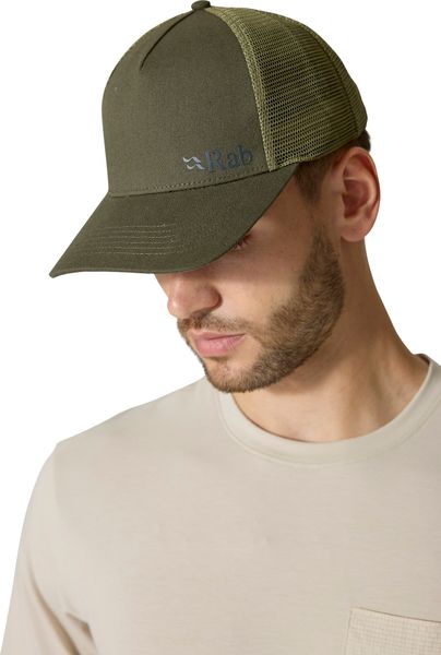 "The Trucker Logo Cap from Rab is the ideal companion for all outdooractivities in sunny weather. This unisex cap combines functionality with a classic design that is both stylish and practical. Made from high-quality cotton, it offers ultimate air circulation thanks to its breathable properties and mesh back. This ensures a comfortable fit, even when temperatures rise. The curved peak provides effective protection from the glare of the sun and the discreet logo on the front gives the cap a modern look. Perfect for hiking, climbing or simply for everyday wear."