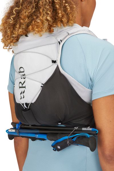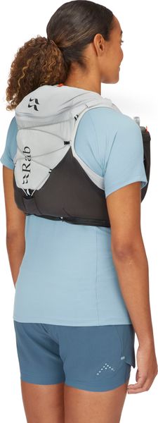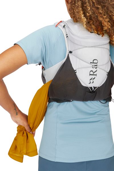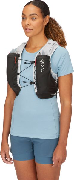 "The Veil 12 running vest from Rab is the ideal companion for anyone who doesn't want to compromise when speed hiking or running. With its lightweight and adaptable design, it offers optimum comfort and a supportive fit that adapts perfectly to the shape of the body. The multidirectional mono mesh fabric provides excellent support and minimizes vibrations so that you can move freely even on demanding terrain. The vest is particularly breathable and absorbs up to 70% less water than comparable models, making it the perfect choice for more strenuous activities."