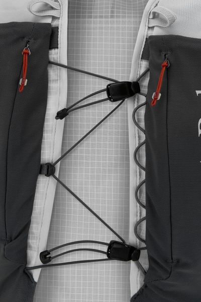 "Equipped with a large uu00dfzu00fcgige compartment with YKKu00ae-Reiu00dfverschluss, the Veil 12 offers enough storage space for all your equipmentu00fcstung. Two 500-ml hydration bladders are included and perfectly integrated into the front, while the back section offers space for an additional 2-liter hydration bladder. The stretchy side inserts and adjustable chest system ensure an individual adjustment and optimum fit, while the rear elasticated drawcord safely stows away wet equipment."