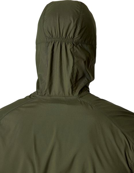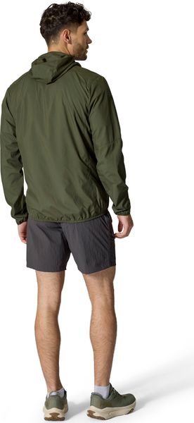"Lightweight hooded jacket with windproof Pertexu00u00e Quantum material for reliable protection during windy outdoor activities."