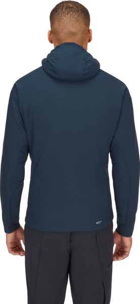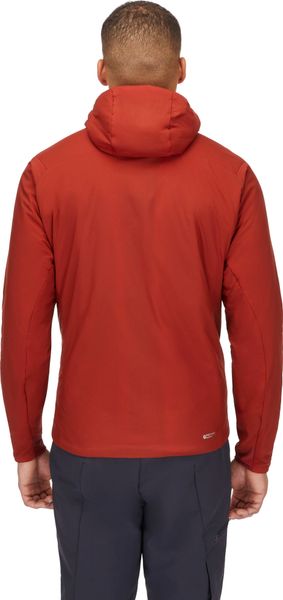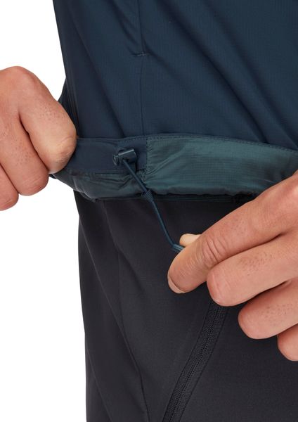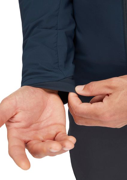"The jacket scores points with well thought-out details such as the helmet-compatible hood, which fits perfectly thanks to elastic elements, and pre-shaped sleeves that offer full freedom of movement when climbing. Two slit pockets and an inner chest pocket with zipper provide ample storage space for important items. The chest pocket also serves as a pack sack and is equipped with an attachment loop for the climbing harness. Elasticated cuffs and an adjustable hem ensure that the jacket stays tight and fits perfectly even in cold weather."