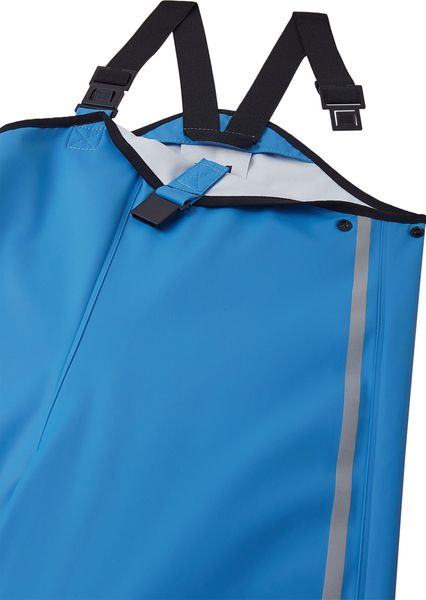 "A special highlight are the reflective details, which increase the visibility and safety of your children in poor light conditions. The rain trousers are equipped with adjustable braces and an adjustable waistband, which ensure an optimum fit and a high level of comfort. Elastic leg cuffs and detachable, elastic foot loops provide additional support and prevent the trousers from slipping while your children are jumping in puddles or running through the rain."