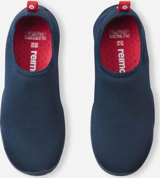 The breathable and lightweight shoe from Reima is the ideal companion for little adventurers when swimming and water sports. With its flexible fabric upper and extra-flexible sole, it offers optimum protection for feet when swimming and splashing around. The shoes prevent injuries from hot sand, sharp stones or shells and are therefore perfect for the beach. Thanks to the thermoplastic rubber sole, they offer good grip, but it should be noted that all shoes can be slippery on wet tiles - they are therefore not suitable for use by the pool.