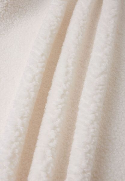 "Stylish coat with warm pile, soft fleece, zipper and elegant A-line shape for cold days."