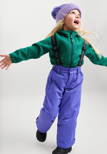 Robust, waterproof children's snow pants with recycled insulation and adjustable suspenders for optimum protection.