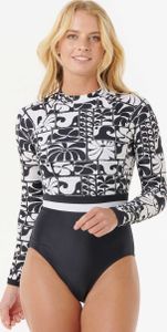 "The swimsuit is equipped with long sleeves and has a practical zipper at the back, which makes it easier to put on and take off. A nylon strap provides additional support, while the full lining ensures a comfortable fit. The metallogotrimming gives the swimsuit an elegant touch and stands for the high quality and durability that characterize Rip Curl."