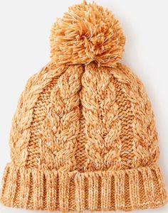 "Stylish women's beanie made of soft acrylic with cable pattern, detachable bobble and modern space-dye yarn."