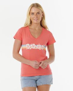 "The Keepsakes V-neck Tee from Rip Curl is the perfect choice for anyone looking for a relaxed yet stylish look for leisure and everyday wear. Crafted from soft cotton jersey with an on-trend stone wash finish, this women's tee not only offers supreme comfort, but also a casual elegance that is ideal for urban and professional activities. The subtle print on the front and the casual V-neckline give the shirt a relaxed, coastal energy that is reminiscent of sunny days at the beach."