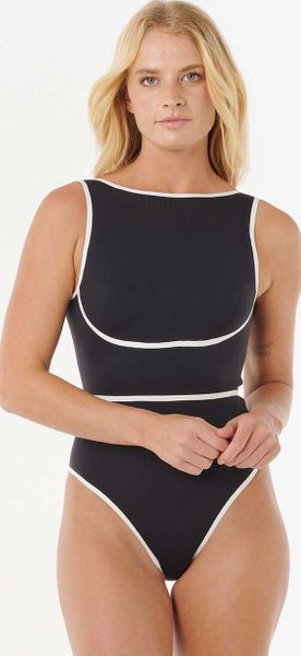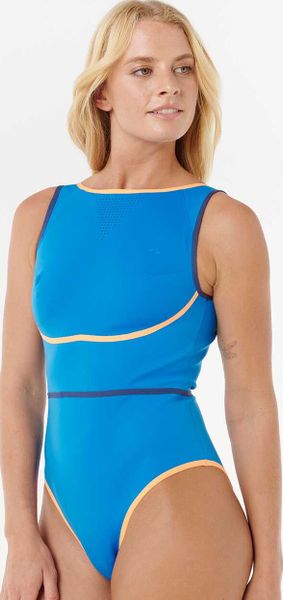 "The Mirage Fusion High Neck one-piece from Rip Curl is the perfect swimsuit for those who value performance and style. With its high neckline, it not only offers an elegant fit, but also optimum coverage for swimming and water sports. The critical seams are welded, which increases the longevity of the swimsuit while providing a clean, seamless look."