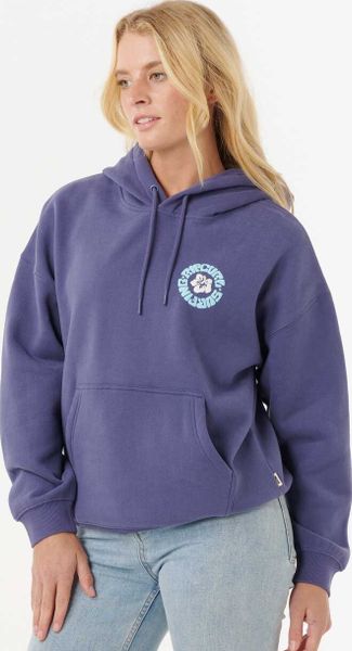 "The Surf Puff Heritage Hood from Rip Curl is the ideal companion for women who value comfort and style. Made from a soft 360G Peach cotton and polyester fabric, this pullover is comfortable to wear. The heritage cut ensures a timeless fit, while the eye-catching puff prints on the front and back give the hoodie a modern touch. The hood provides protection from the wind and weather, while the cozy hoodie pocket offers space for cold hands or small items. Small woven flag pendants add subtle accents and round off the design. Perfect for a layered look, this hoodie is a must-have for any wardrobe."