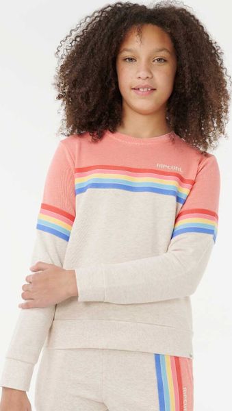 "The Surf Revival Crew-girl Sweater from Rip Curl is the ideal choice for fashion-conscious girls looking for comfort and style after a long day at the beach. This sweater features a comfortable standard cut and is made from a high-quality 250G polycotton blend that guarantees both softness and durability. The cut-out and sewn panels give the sweater a dynamic look, while the subtle brand labels round off the look. Whether for a relaxed evening with friends or a cozy time after surfing, this sweater offers versatility and a touch of surf culture in everyday life."