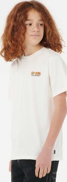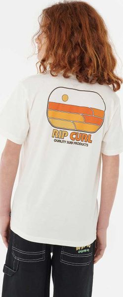 "The Surf Revival Lined UP Tee for boys from Rip Curl is the ideal piece of clothing for little adventurers who love the casual surf lifestyle. Made from soft 160Gcotton jersey, this Tshirt not only offers comfort, but also excellent breathability, which is perfect for everyday wear. The loose cut ensures maximum freedom of movement, while the eye-catching prints on the front and back make a fashion statement. A woven flag label gives the shirt an extra touch of style and makes it an essential part of every boy's urban wardrobe."