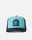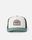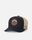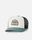 "Custom cotton twill trucker cap with curved peak and woven badge for a casual surf style."