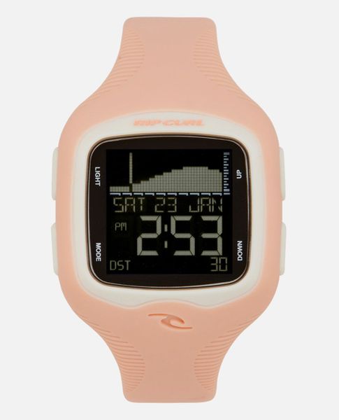 "The Kauai Tide by Rip Curl is the ultimate watch for style-conscious female surfers who value functionality and design. With over 500 pre-programmed tide locations, this water-resistant ladies' watch offers a precise display of the tides in the form of graphs or on a detailed display. This makes it the perfect companion for anyone who wants to make the most of their time by the sea."
