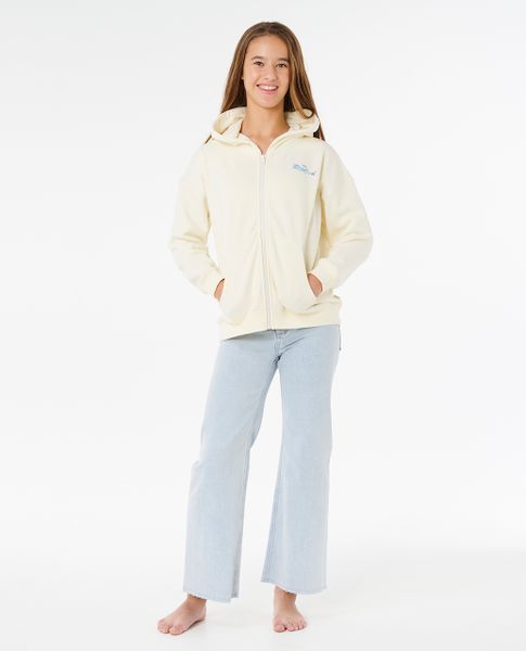 "It's in the details The Keepsakes fleece jacket for girls (8-14 years) offers a standard cut with a zipperu00dfastener. Decorated with a fabric print, a silicone badge and a label on the inside of the neck, it's ready for chilly days at the beach."