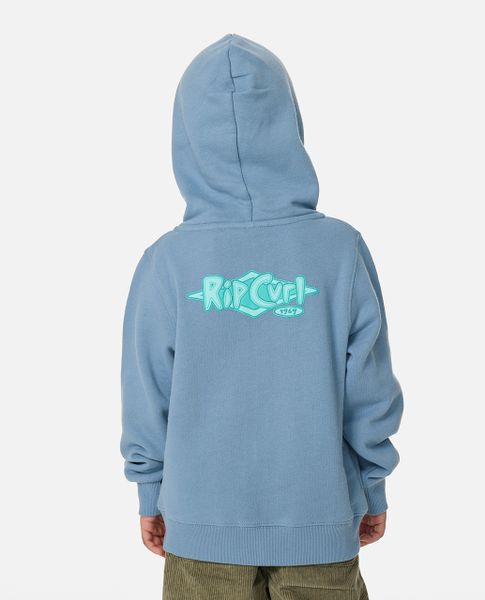 "It's in the details. This hoodie for kids has playful prints on the front and back, a front cowl pocket and a woven flag label- designed to keep little surfers warm and stylish"