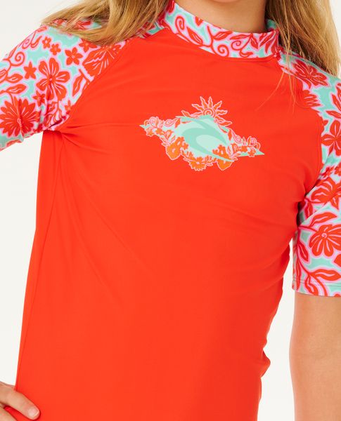 "Protection and elegance with the short-sleeved Waves UV-shirt. This UV shirt offers a UV protection factor of 50+ and protects your skin during activities in the water. The front and back print add a certain flair, while the thermal printlogo promises elegance. The flatlock-nu00e4wires ensure durability and the elasticated boardshortloop ensures a secure fit. Experience sun protection with comfort with this reliable UV shirt."