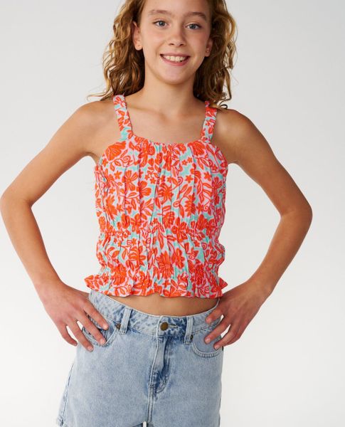 """The ""Sunshine ""Squad ""Woven ""Top ""from ""Rip ""Curl ""is ""the ""perfect ""choice ""for ""style-conscious ""girls ""who ""value ""both ""comfort ""and ""sustainability. ""Made ""from ""high-quality ""wool, ""this ""tank ""top ""is ""not ""only ""comfortable ""to ""wear, ""but ""also ""an ""environmentally ""friendly ""alternative ""to ""traditional ""materials. ""The ""regular ""fit ""ensures ""a ""comfortable ""fit ""that ""is ""ideal ""for ""everyday ""wear."
