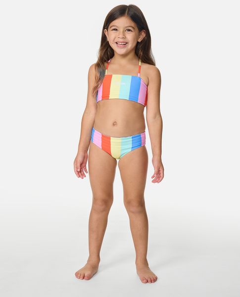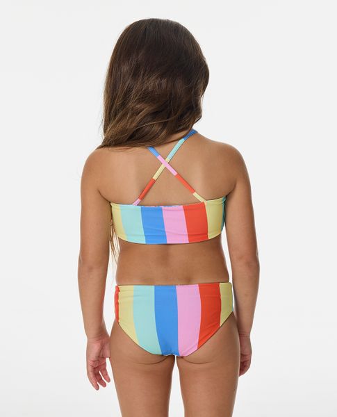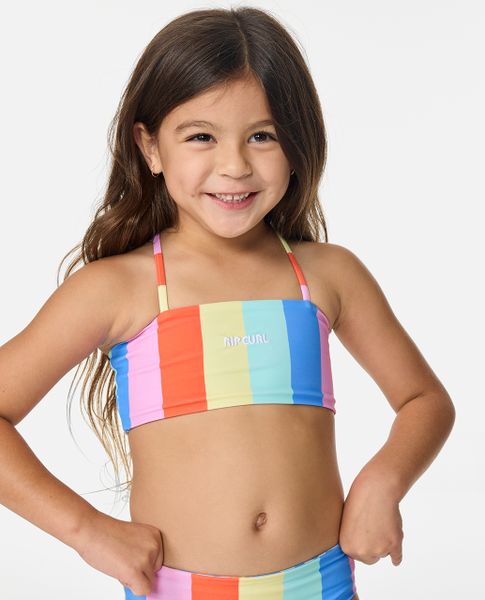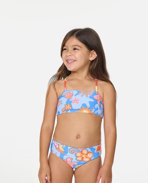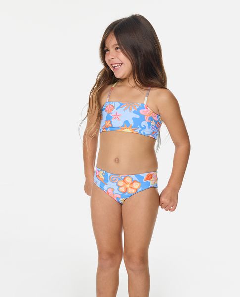 "The Revival girls' swimsuit has a sleek, navy design with trendy side panels, a low-cut back and contrasting edges. It offers comfort and style for fun water sports activities."
