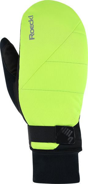 Whenever it gets really cold out on the cross-country ski trails, it’s the extra warm – and extra comfortable – TULFES’ time to shine. This long, puffy cross-country skiing glove owes its extremely high level of protection against cold temperatures and its EXTRA WARM label to the backhand made from WINDSTOPPER® Soft Shell Elastic by GORE-TEX LABS, a windproof, highly breathable and elastic functional material, combined with the palm made from water-repellent DURASENSE. For a secure grip on the ski poles in any weather, this thin yet soft and tactile synthetic suede is siliconized with ALL-WEATHER-GRIP. Speaking of weather: Since the TULFES is all about warmth, it includes a soft Easy-Dry lining for humidity control as well as high-performance PrimaLoft® Gold Insulation Eco with Grip Control. Additional features include a convenient, wonderfully soft WINDSTOPPER® Tornado thumb by GORE-TEX LABS for wiping away sweat on arduous trails and a long fleece cuff with an elastic Velcro fastener for a secure, warm and soft fit around the wrist. The TULFES is available as a classic finger glove and as the even warmer TULFES MITTEN. It is machine-washable at 30° C (86° F). A sporty reflective ROECKL logo on the index finger adds the finishing touch to the three colorways: black, black with white inserts and bright yellow with black.