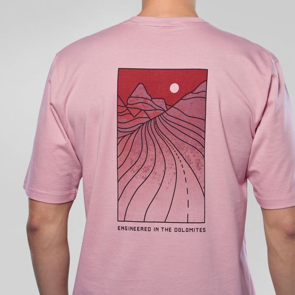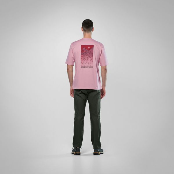 "Breathable and environmentally friendly T-shirt with unique mountain illustration, ideal for comfortable hiking adventures."