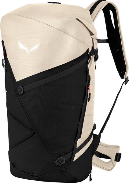 "The Puez 32+5L backpack by Salewa is the perfect companion for women who plan shorter trekking tours as well as longer adventures in the Dolomites or other mountain regions worldwide. Its modern and versatile design combines robust Robicu00u00ae ripstop-nylon with ballistic-nylon to ensure durability and lightness. A particular highlight is the roll-top opening, which not only allows quick access, but also offers an additional five liters of storage space for extended tours."