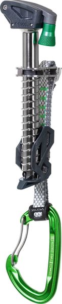 "The integrated cutting tip protector, which can be easily removed even when wearing gloves, not only offers safety, but also keeps the screw firmly attached to the harness. This all-in-one solution combines screw, Dyneemaextractor, aluminumcarabiner, tip protector and carrying device in one. The Quick Screw is available in three different lengths, which are easy to distinguish thanks to color coding."