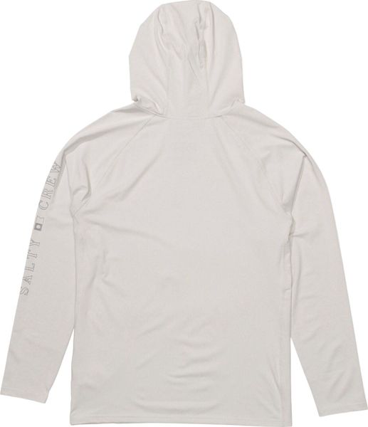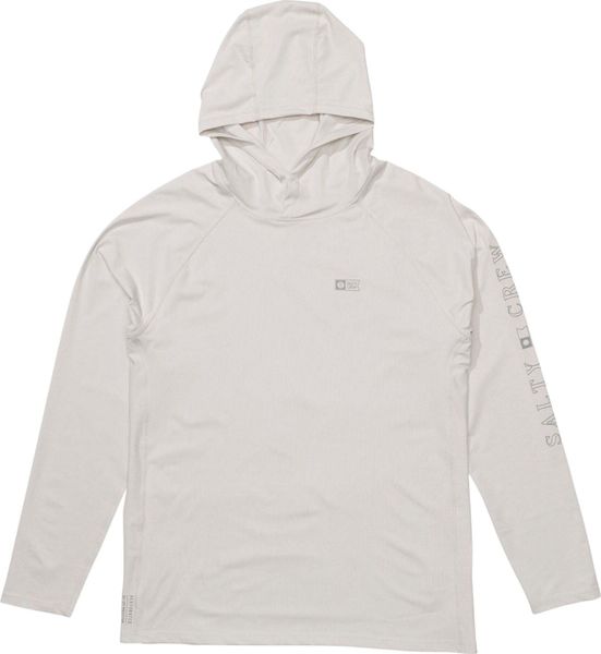 "With UPF 50+ sun protection, the shirt offers optimum protection against harmful UVradiation, ideal for extended sessions both on land and on the water. The ergonomic seam seams and flatlock seams with side seam gussets guarantee additional comfort and durability. The adjustable hood with press stud fastening provides additional protection from the sun and gives the shirt a technical look, which is rounded off by the characteristic Salty Crew graphics on the chest and sleeves."
