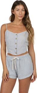 "Discover the perfect mix of style and comfort with the Cloudbreak Cami from Salty Crew. This charming cami top is made from 100% cotton gauze, which not only makes it extremely comfortable to wear, but also ensures excellent breathability. The corsetstyle with scalloped hem gives the top a feminine touch, while the button placket at the front adds an elegant design element. The elasticated back ensures a flexible fit that adapts perfectly to your silhouette, ideal for all occasions. Whether for a relaxed day at the beach or a stylish evening out, this cami top is an essential piece in any women's wardrobe."