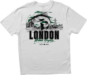 "The London Urban Angler SS Tee by Salty Crew is a unique garment designed as part of the limited edition Urban Anglers Graphics Series. It features original graphics by artist Wenceslas Remusat that depict a fascinating connection between urban life and fishing culture. Inspired by the tranquil moments along London's rivers and historic canals, this shirt highlights the art of street fishing and celebrates those who find fish where others only see concrete."