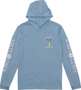 "The Tailed Hood Sunshirt from Salty Crew is a must-have for men who value protection and comfort both in their free time and at work. Inspired by life on the coast and time on the water, this sun shirt features original graphics by Amadeo Bachar that give the shirt a unique maritime character. It has been specially designed for long days in the sun and offers maximum freedom of movement thanks to its lightweight, breathable 4wege stretch material."
