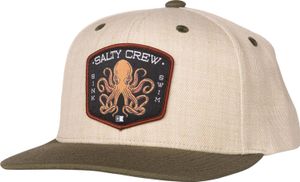 "Discover the Tako Club Snapback from Salty Crew, the perfect addition to your casual look. This snapbackcap is made from 100% cotton twill and offers a durable yet comfortable fit. The structured 6panel construction provides a mid crown height that is both stylish and functional. The flat brim gives the cap a modern silhouette that is ideal for everyday wear."