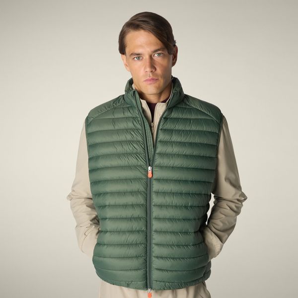 "The Adam men's vest from Save the Duck offers the perfect combination of style and functionality. Made from high-quality, quilted nylon and filled with the innovative, animal-free Plumtechu00eae filling, it guarantees comfortable warmth while remaining lightweight. This vest is ideal for the fashionable man who values sustainability and can be worn solo or as an additional layer under a jacket. The slim fit creates a modern silhouette, while the stand-up collar and elasticated cuffs provide additional comfort."