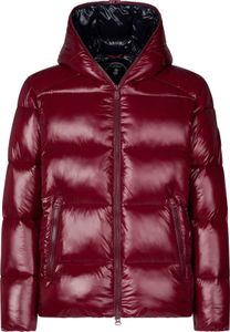 "Sustainable men's jacket with a glossy finish and windproof Recycled Plumtech padding for stylish winter looks."