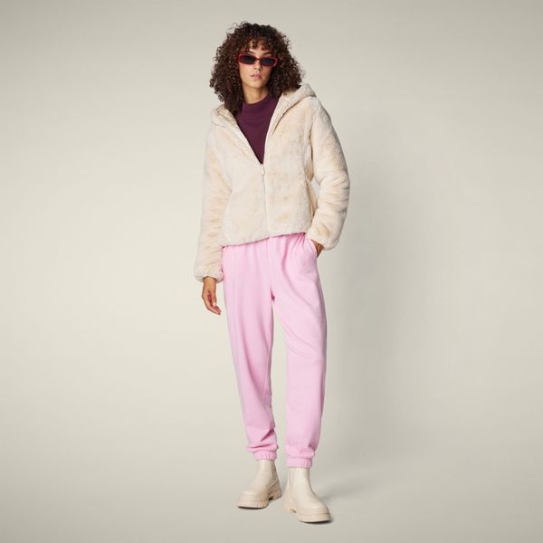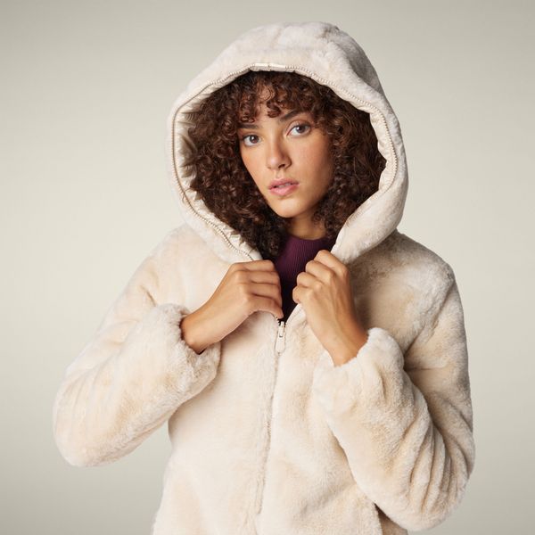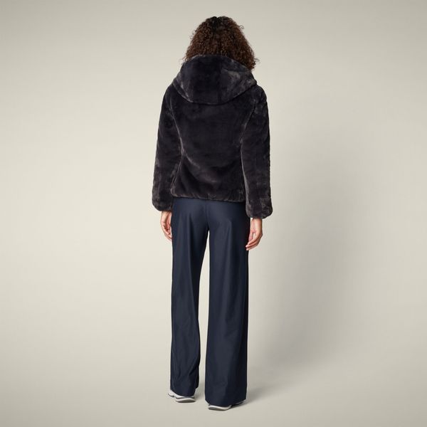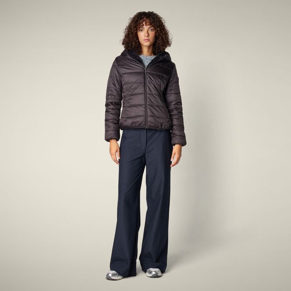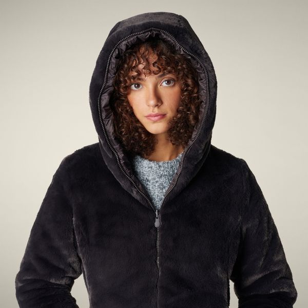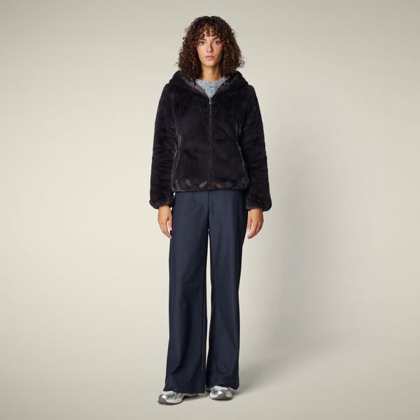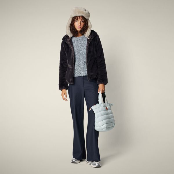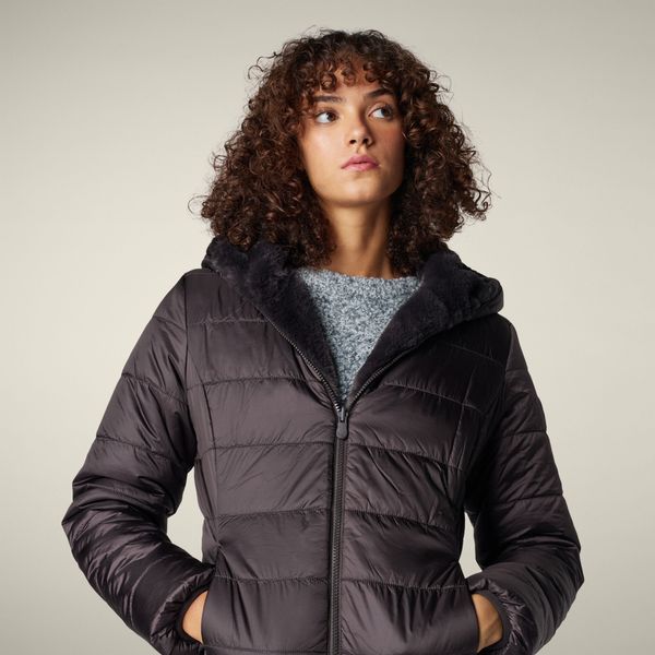 "The Laila women's jacket from Save the Duck is the perfect companion for cold days. This reversible design offers you two different looks in one garment: a stylish quilted side for a modern, urban look and a luxuriously soft faux fur side made from recycled polyester that not only keeps you warm but is also sustainable. The jacket is specially designed for women and offers a regular fit that guarantees a comfortable fit"
