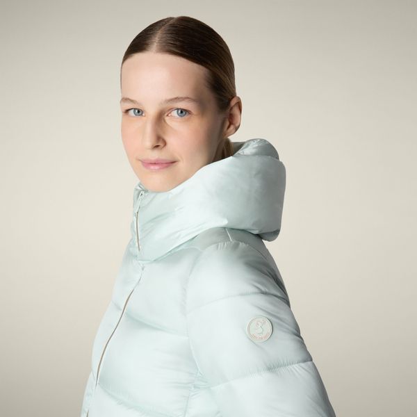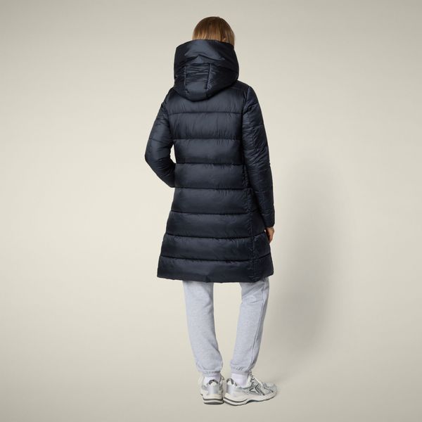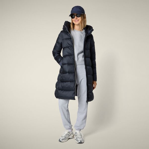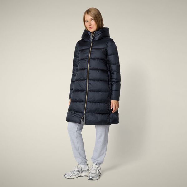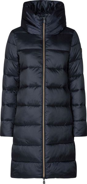 "The Lysa women's coat from Save the Duck combines stylish elegance with practical functionality and is perfect for everyday urban life. The extra-long cut ensures maximum comfort and protection from the wind and weather, while the high collar is equipped with a sophisticated hood that can be discreetly fastened with a press stud. The invisible zips on the side pockets emphasize the clean design and offer practical storage space at the same time."