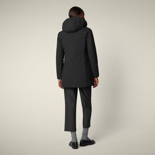 "The Rachel-Parka from Save the Duck is the perfect combination of style, functionality and sustainability. This mid-length women's jacket is made from fully recycled materials derived from plastic bottles. It not only offers protection from the elements, but also a clear conscience. The parka is waterproof and has a water rating of 5000, making it ideal for rainy days. The slim fit ensures an elegant silhouette, while the detachable and adjustable hood offers additional protection and flexibility."