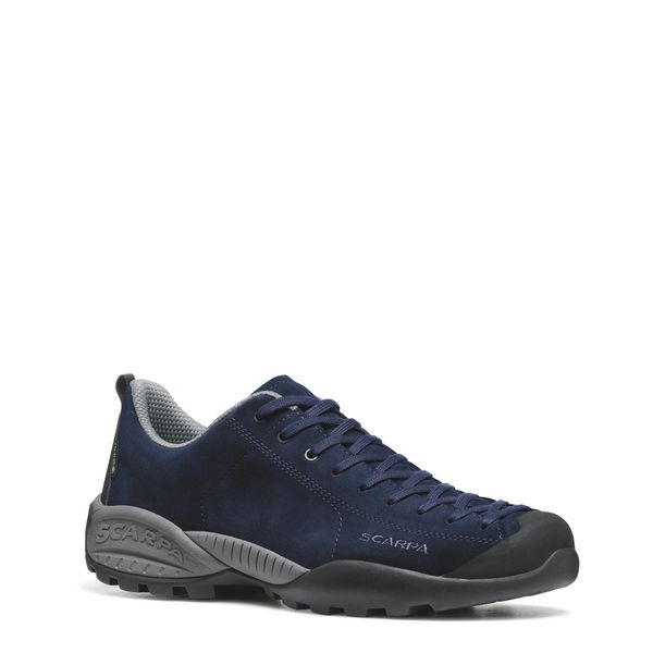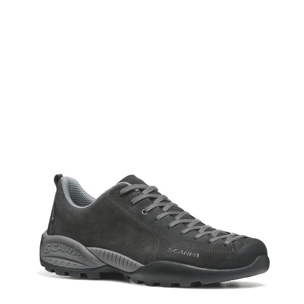 "The MOJITO GTX from Scarpa is a versatile lifestyle shoe that is perfect for everyday urban life and leisure activities. With its waterproof and breathable design, this shoe offers optimum protection in all weathers without compromising on comfort. The soft suedecalfskin lining ensures a pleasant feel, while the extended lacing system enables a precise and individual fit."